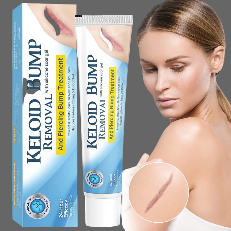 Effective scar removal gel for keloids, stretch marks, piercing bumps and surgical scars.  Easy to apply, fast-acting formula.  Safe for all ages.  Try our keloid removal which is easy to use quick to work and helps rejuvenate your skin.  Small and light enough to carry around.3. Restore skin vitality rebuild skin smooth. Easy to use both adults and children can use.  How to Use:  Clean the area around the keloid with water then dry thoroughly.   Apply a thin layer of silicone scar gel to the keloid making sure to cover the entire area.  Massage the gel gently into the skin using circular motions.  Allow the gel to dry completely before applying any other products or clothing.Step5. Repeat the application two to three times per day.  Tips:1. For external use only.2. Store in a dry cool place.3. Before applying scar removal gel do a skin test on your arm.4. Avoid contact with eyes accidentally into eyes please rinse with plenty of water.